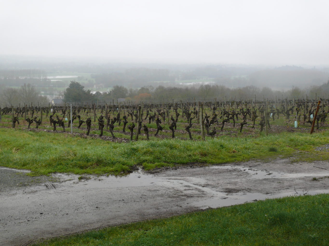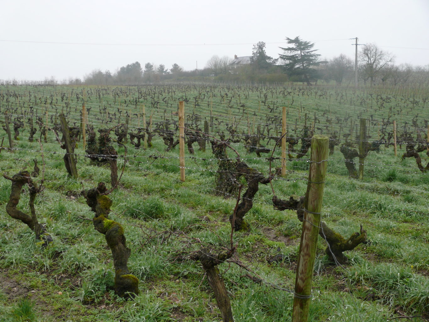 Février 2018. Pluie. Horizon bouché. Le domaine Delesvaux se situe au sommet de la Corniche angevine. En contrebas, les vallées du Louet et de la Loire. En face,sur l’autre rive du grand fleuve, la Coulée de Serrant ; mais ce n’est pas aujourd’hui que les biodynamistes Catherine et Philippe pourront communiquer avec Virginie et Nicolas par signaux de fumée ! Car au domaine Delesvaux, on respecte aussi la vigne, la Terre qui la nourrit, l’équilibre de son écosystème, les rythmes biologiques et biodynamiques. Tout cela intègre, évidemment, le respect de l’humain.