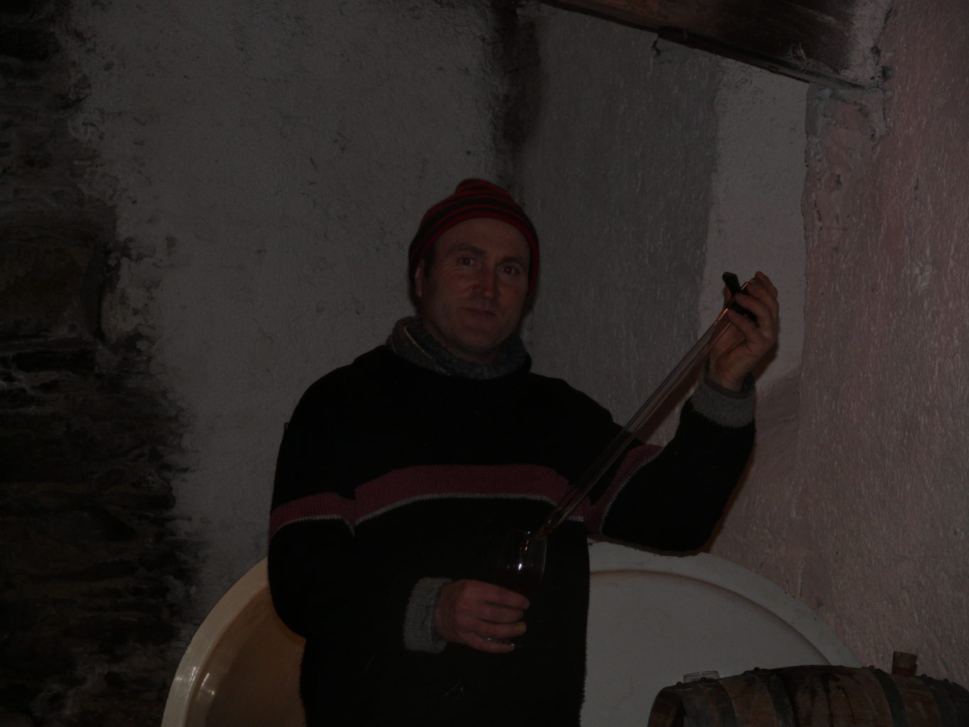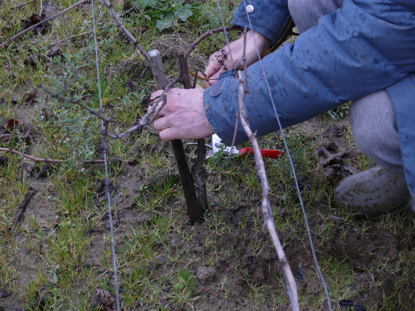 2 février 2014. C’est l’hiver, la grisaille s’étend sur les coteaux du Muscadet et le vent souffle. Il faut pourtant mettre le nez dehors pour aller tailler la vigne. Le Pé de Sèvre, sur la commune du Pallet est un pittoresque hameau en bord de Sèvre, Pé signifie butte. C’était autrefois un port où s’amarraient les gabarres qui naviguaient sur la Sèvre et acheminaient ainsi le vin et d’autres denrées vers la Loire. Maisons de schiste, ruelles étroites, le village est endormi. C’est là que Christophe Maillard, vigneron, imprime son empreinte et, les beaux jours revenus, réveille le village par les animations dont il a le secret.