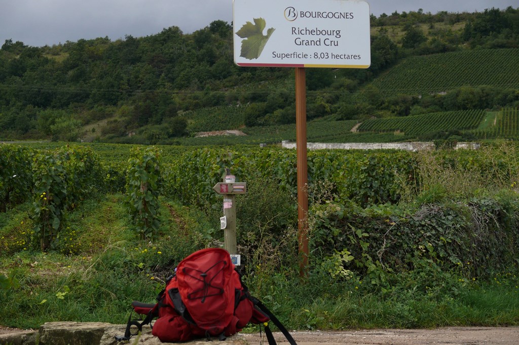 Septembre 2013 : Bonum Vinum a pris son sac à dos pour entamer une grande randonnée à partir de Dijon et qui devrait le conduire en 2015 en Andorre. C’est l’occasion de traverser de nombreux vignobles. Cette première étape traverse bien sûr les côte de Nuits et côte de Beaune. Les derniers touristes, surtout américains, serpentent les routes. Vignobles somptueux remplis d’Histoire. Le temps était clément et dégageait parfois une belle lumière crue en fin de journée. Voici quelques photos de ce pays bourguignon qu’on traverse avec respect en pensant à tous ces vignerons que ces murets de clôture ont vu défiler au cours des siècles. Pensée aussi en voyant ces grappes de Pinot noir ou de Chardonnay (grappillage interdit) qui force l’imagination à propos de ces grands vins souvent inaccessibles. Mystère de ces villages aux rues étroites et aux maisons serrées dont les caves sont à peine visibles. Nous sommes juste avant les vendanges et il est bien difficile d’imaginer la cohue des tracteurs dans ces passages étroits. Ici, tout a été façonné par l’homme au service du vin et de la vigne mais on dirait que l’esthétique a été pensé en même temps. Ici, la nature a été mise sur une toile ; pour découvrir plus de sauvage, il faut grimper au delà des bois qui surplombent les Côtes et le coup d’œil en vaut aussi la peine.