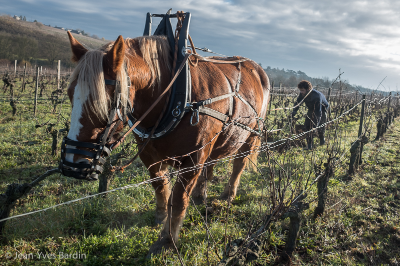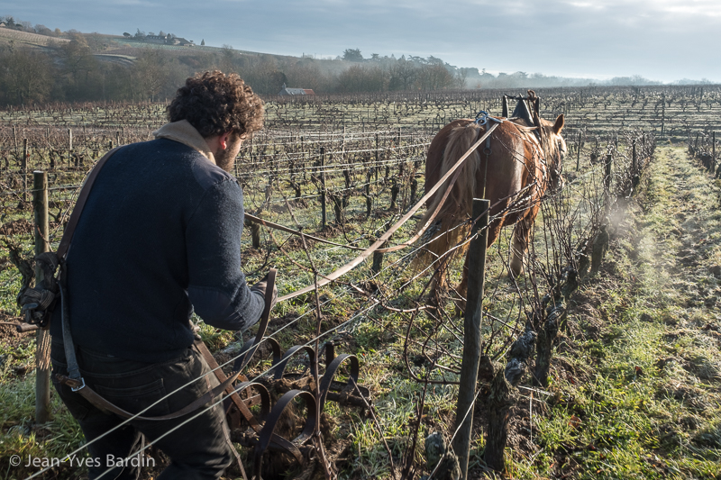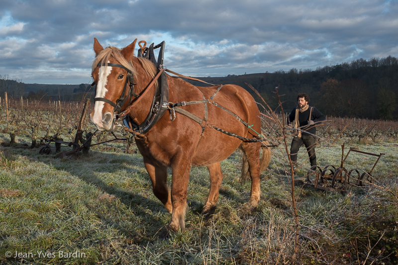 Labour des vignes au cheval chez Adrien de Mello